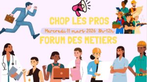 Dans le cadre du Parcours Avenir et de vos recherches d’orientation professionnelle, nous avons l’honneur de vous convoquer à participer au Forum des Métiers, qui se déroulera le 11 mars 2026, de 8h00 à 12h00. Les convocations vous serons adressées le lundi 9 mars avec les horaires et les salles.